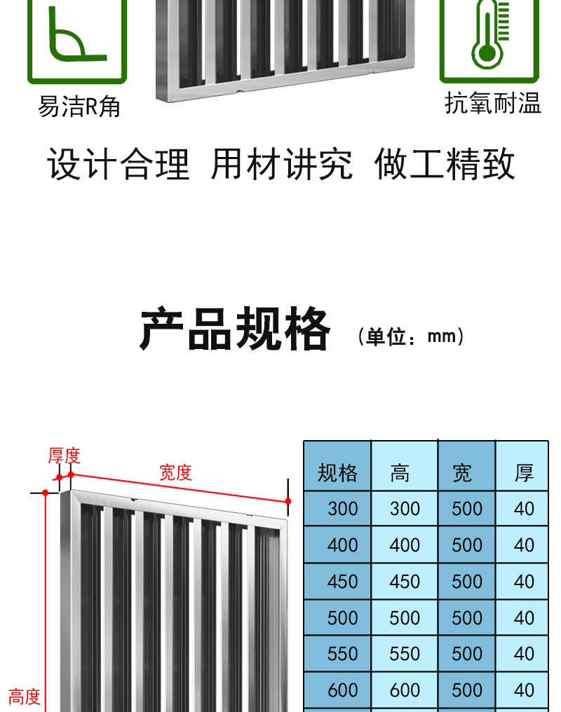 商用不锈钢挡油板烟机排烟罩排风罩过滤网防滴油灶具配件隔油篦子