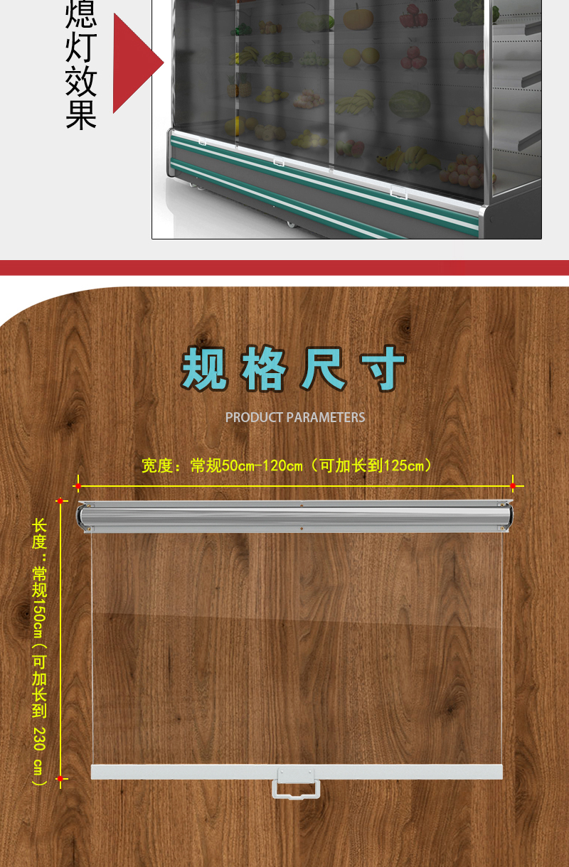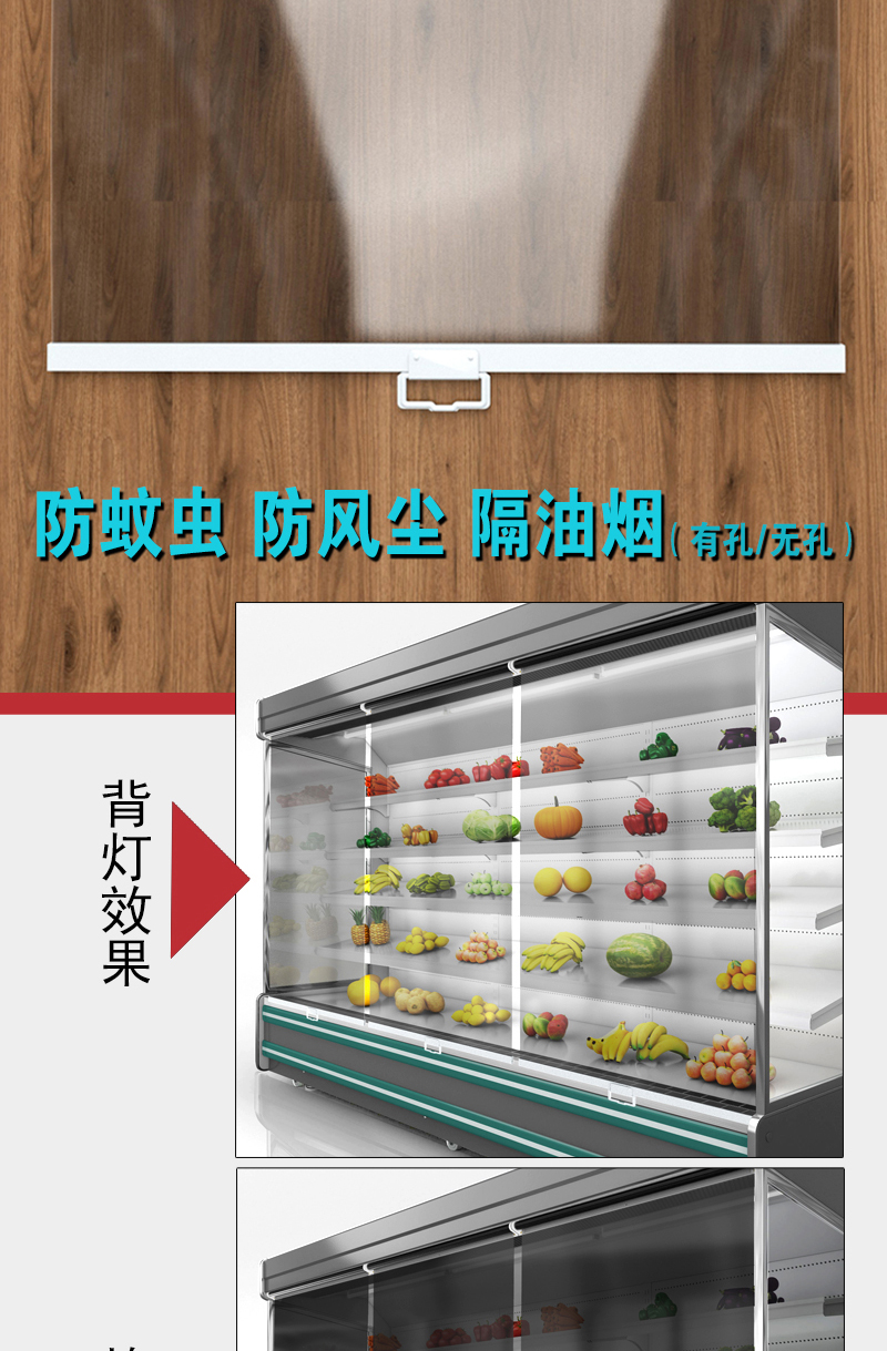 超市冷柜拉帘夜帘展示柜保温帘子点菜柜熟食柜保鲜柜透明卷帘幕帘