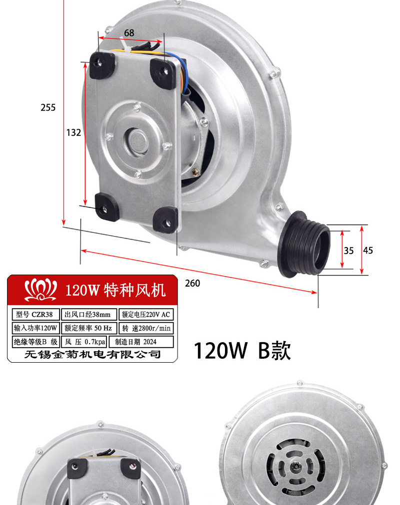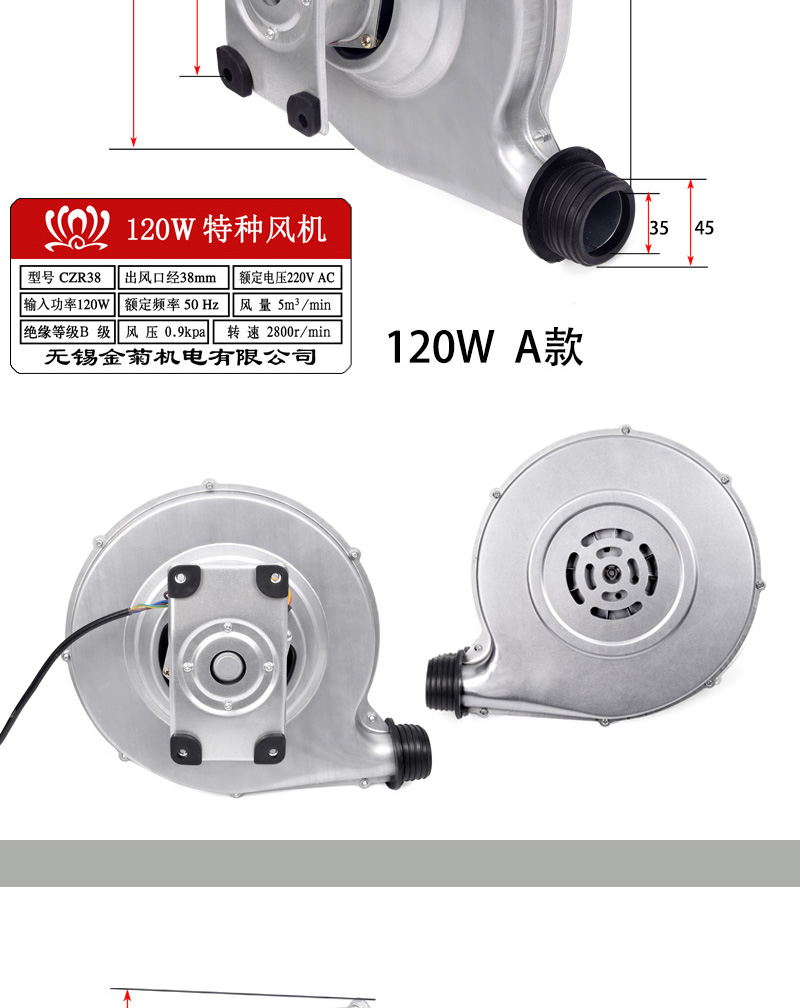 煤气灶120W鼓风机燃气灶炉头鼓风助燃离心式风机醇油灶120瓦风机