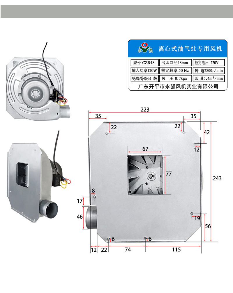 商用厨房120W250W菊花燃气灶鼓风机煲仔炉永强80W蒸包吹风机