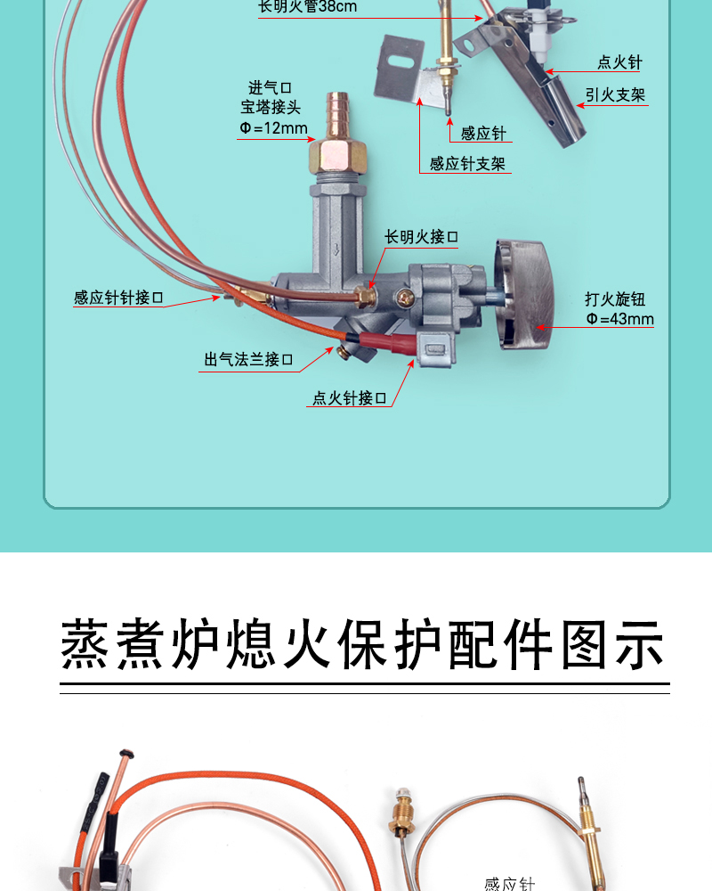 蒸饭柜开关熄火保护点火器商用蒸箱饭车打火总成开关配件安检改装