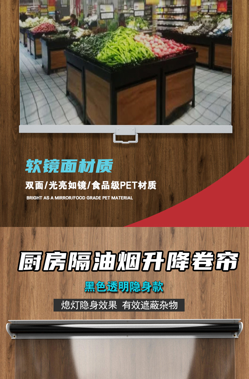 超市升降夜幕帘冷柜拉帘遮阳帘遮光帘厨房隔油烟帘传菜口卷帘子
