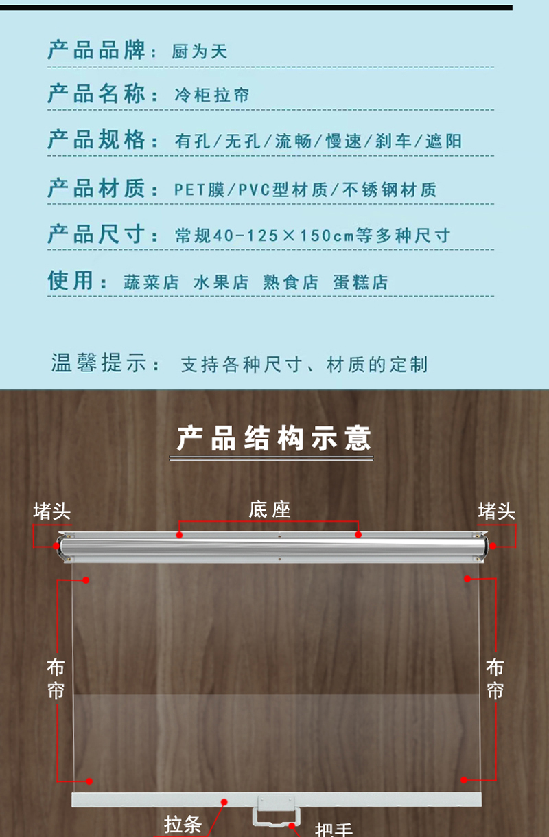 超市冷柜拉帘夜帘展示柜保温帘子点菜柜熟食柜保鲜柜透明卷帘幕帘