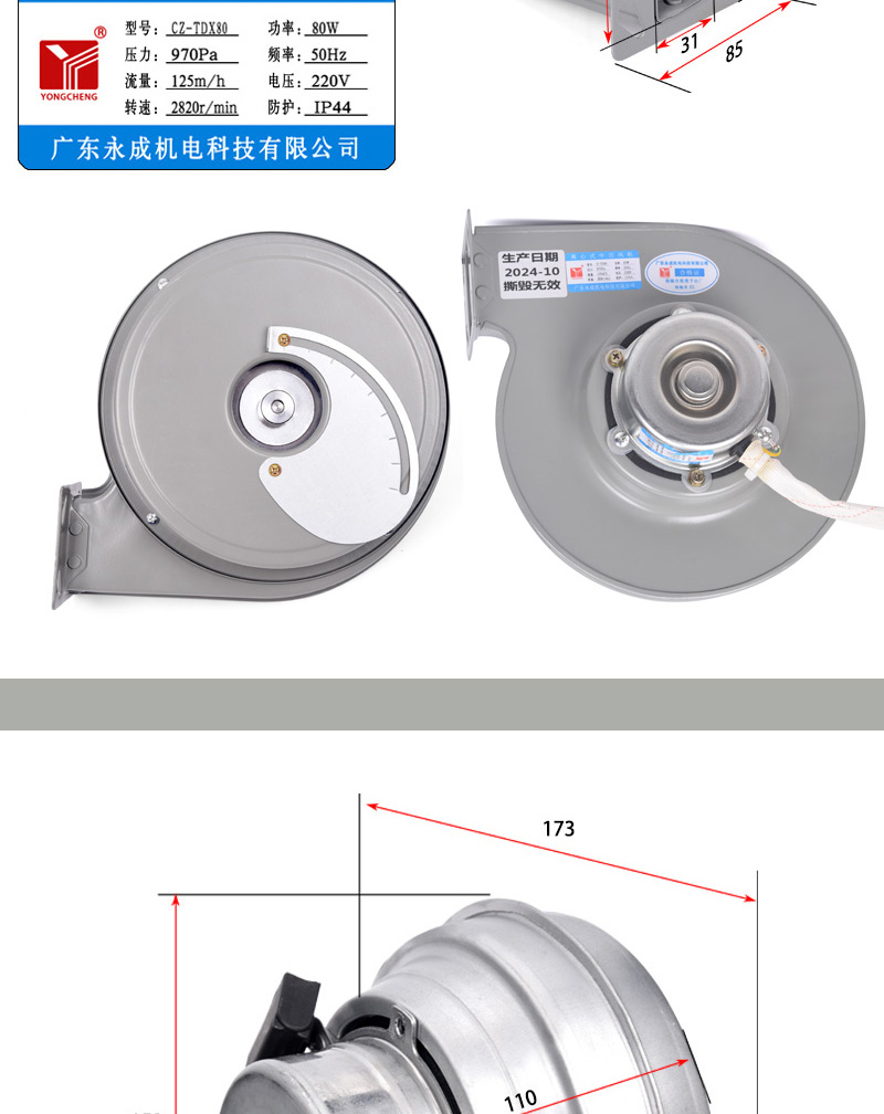 商用厨房120W250W菊花燃气灶鼓风机煲仔炉永强80W蒸包吹风机